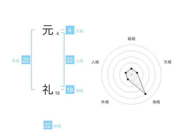 元 礼さんの外格は22画の1点!