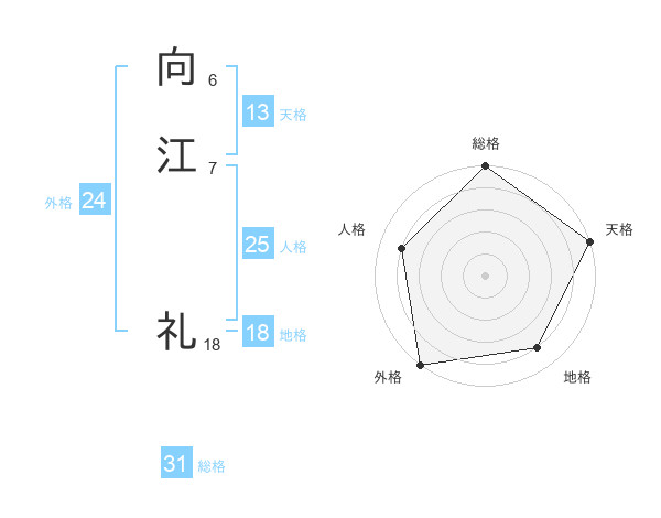 向江 礼さんの総格は31画の5点!