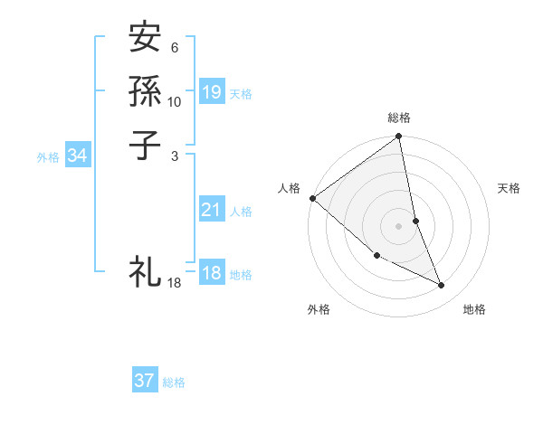 安孫子 礼さんの総格は37画の5点!
