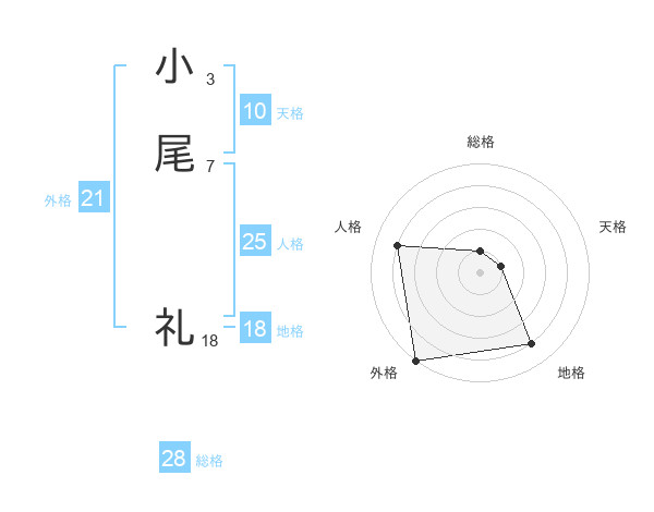 小尾 礼さんの総格は28画の1点!