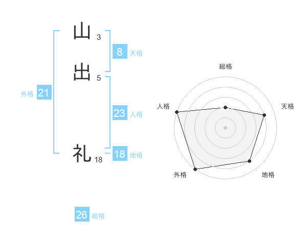 山出 礼さんの総格は26画の2点!