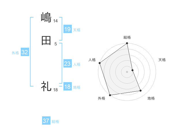 嶋田 礼さんの総格は37画の5点!