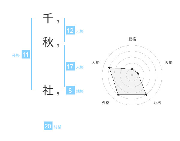 千秋 社さんの地格は8画の4点!