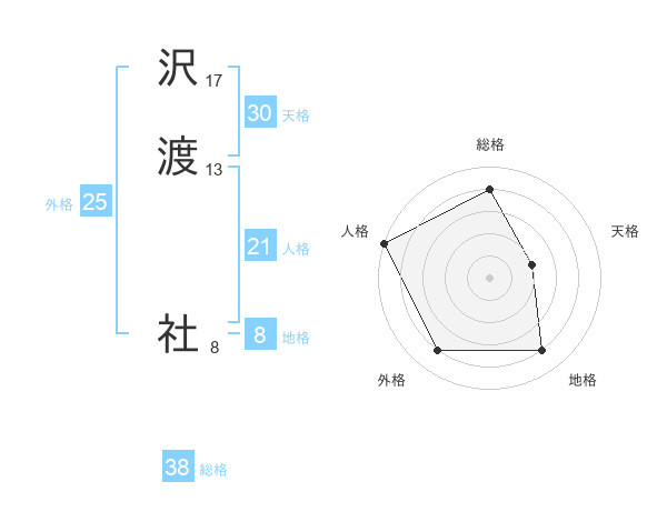 沢渡 社さんの総格は38画の4点!