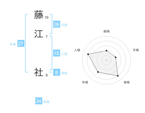 藤江 社さんの総格は34画の2点!