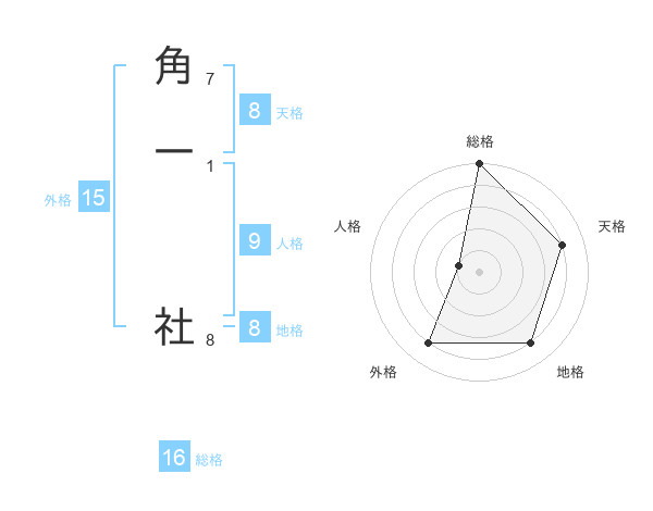 角一 社さんの総格は16画の5点!