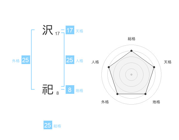 沢 祀さんの総格は25画の4点!