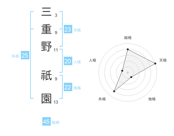 三重野 祇園さんを姓名の画数から五運を鑑定
