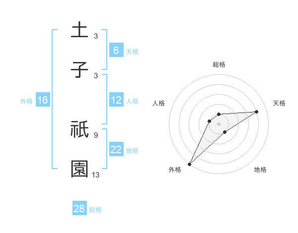 土子 祇園さんの総格は28画の1点!