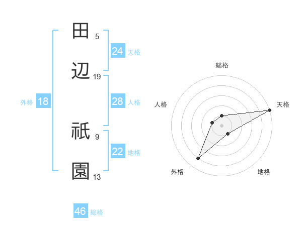 田辺 祇園さんを姓名の画数から五運を鑑定