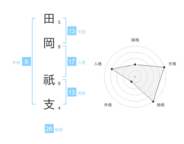 田岡 祇支さんを姓名の画数から五運を鑑定