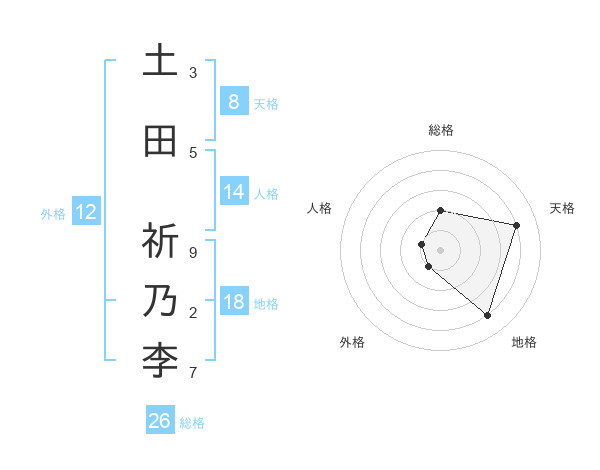 土田 祈乃李さんを姓名の画数から五運を鑑定