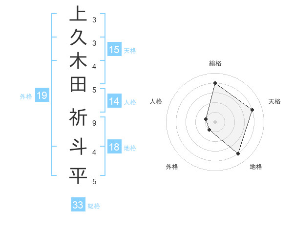 上久木田 祈斗平さんを姓名の画数から五運を鑑定