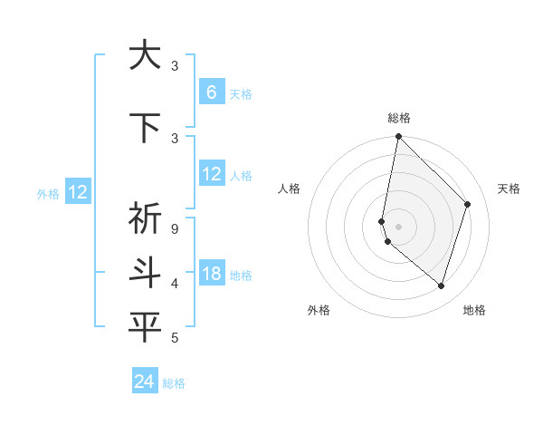 大下 祈斗平さんを姓名の画数から五運を鑑定