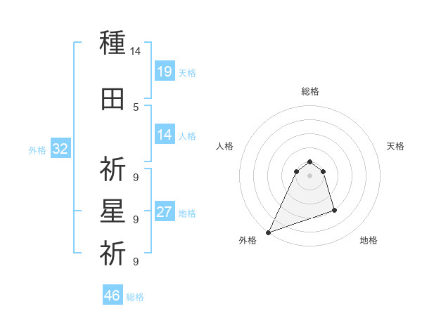 種田 祈星祈さんの外格は32画の5点!