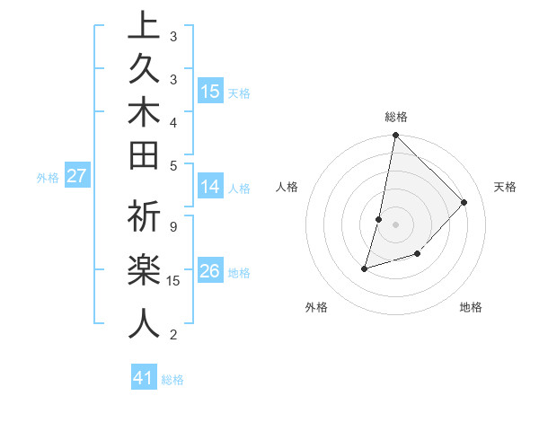 上久木田 祈楽人さんを姓名の画数から五運を鑑定