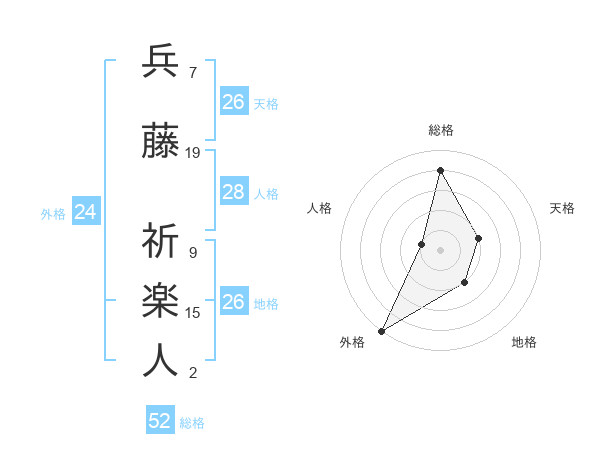 兵藤 祈楽人さんを姓名の画数から五運を鑑定