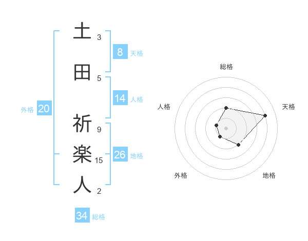 土田 祈楽人さんを姓名の画数から五運を鑑定