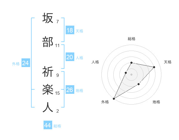 坂部 祈楽人さんの外格は24画の5点!
