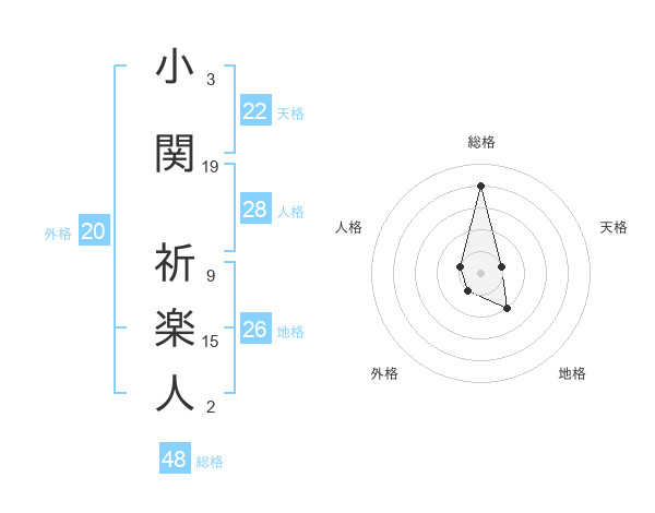 小関 祈楽人さんの総格は48画の4点