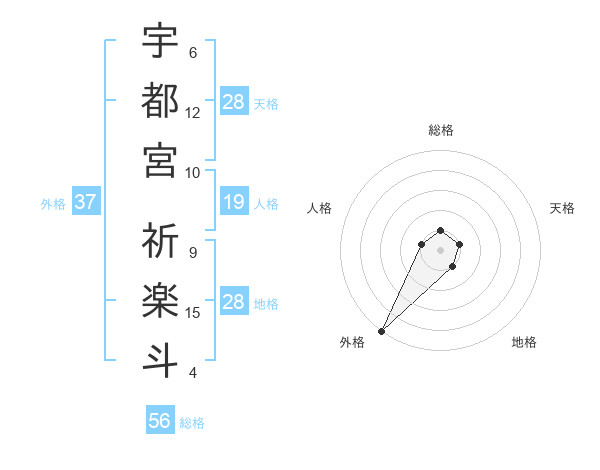 宇都宮 祈楽斗さんの外格は37画の5点!