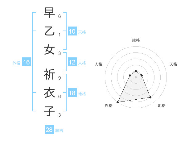 早乙女 祈衣子さんの総格は28画の1点!