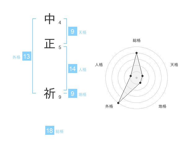 中正 祈さんの総格は18画の4点!