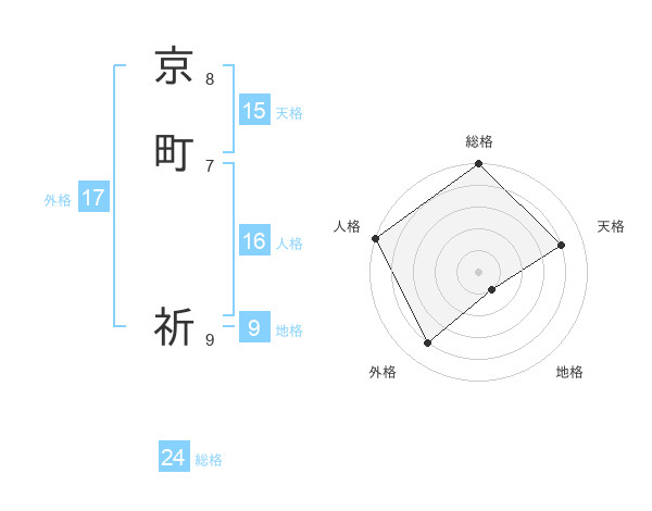 京町 祈さんの外格は17画の4点!