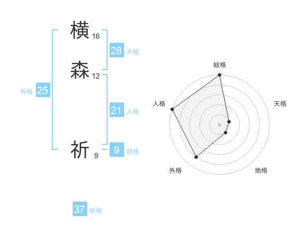 横森 祈さんの総格は37画の5点!