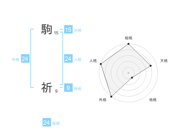 駒 祈さんの外格は24画の5点!