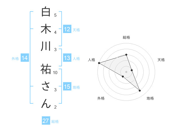 白木川 祐さんさんを姓名の画数から五運を鑑定
