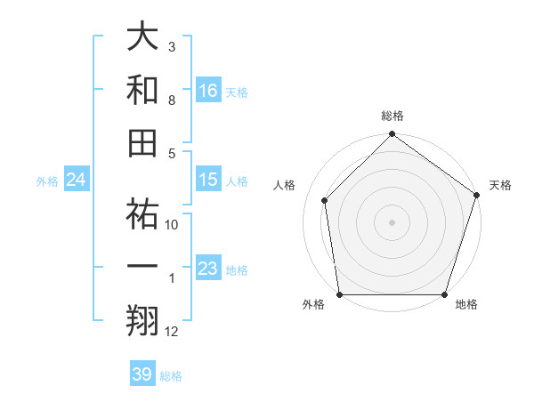 大和田 祐一翔さんを姓名の画数から五運を鑑定