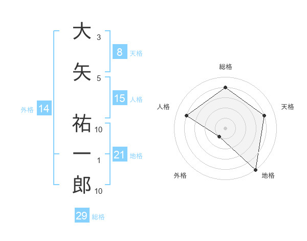 大矢 祐一郎さんを姓名の画数から五運を鑑定
