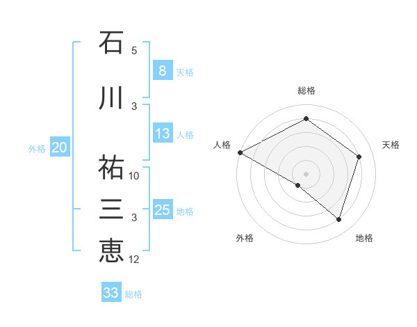 石川 祐三恵さんを姓名の画数から五運を鑑定