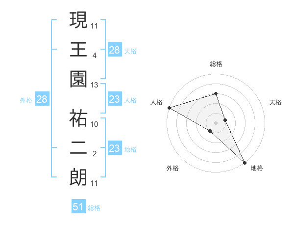 現王園 祐二朗さんの総格は51画の3点!