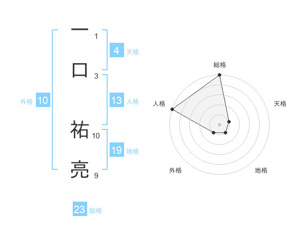 一口 祐亮さんの総格は23画の5点!