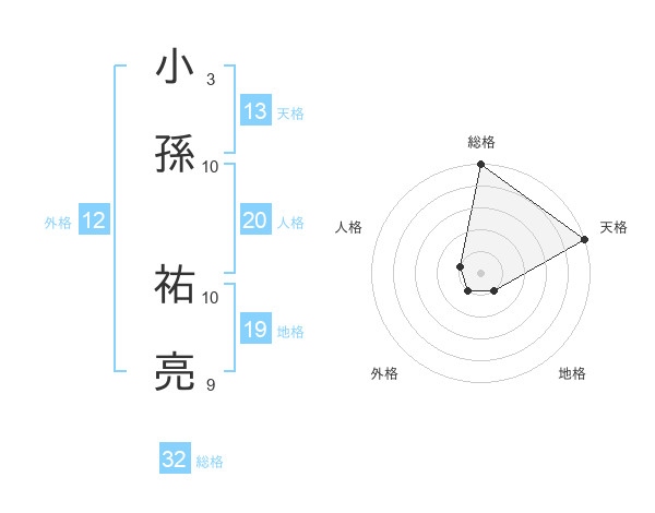 小孫 祐亮さんを姓名の画数から五運を鑑定