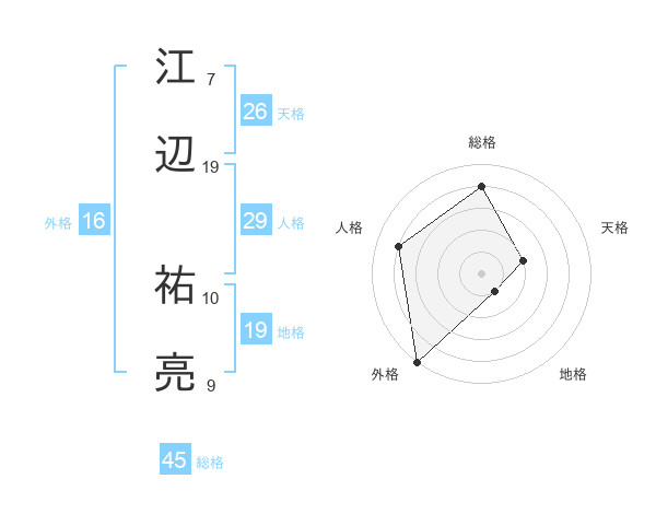 江辺 祐亮さんの総格は45画の4点!