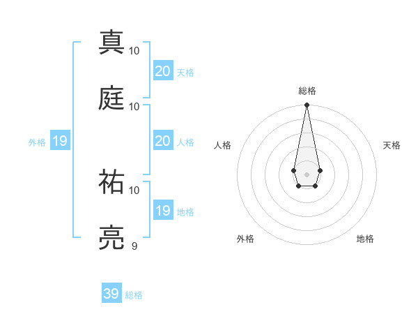 真庭 祐亮さんの総格は39画の5点!
