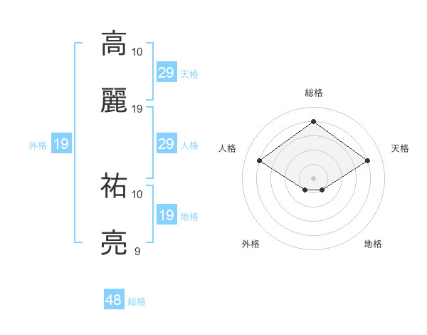 高麗 祐亮さんの天格は29画の4点!