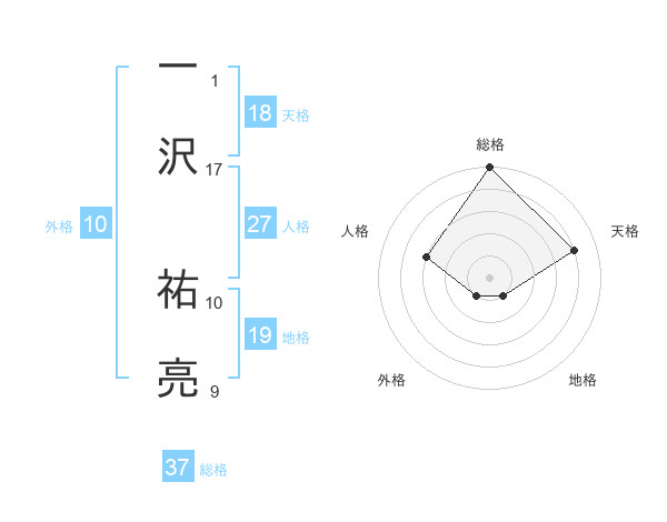 一沢 祐亮さんの総格は37画の5点!