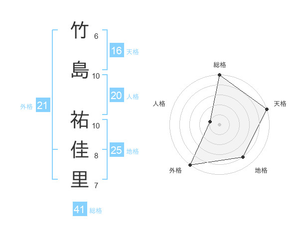 竹島 祐佳里さんの天格は16画の5点!