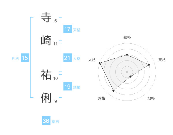 寺崎 祐俐さんの人格は21画の5点!