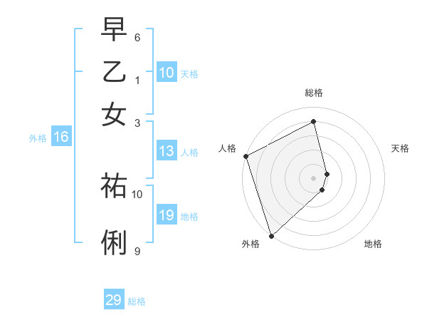 早乙女 祐俐さんを姓名の画数から五運を鑑定