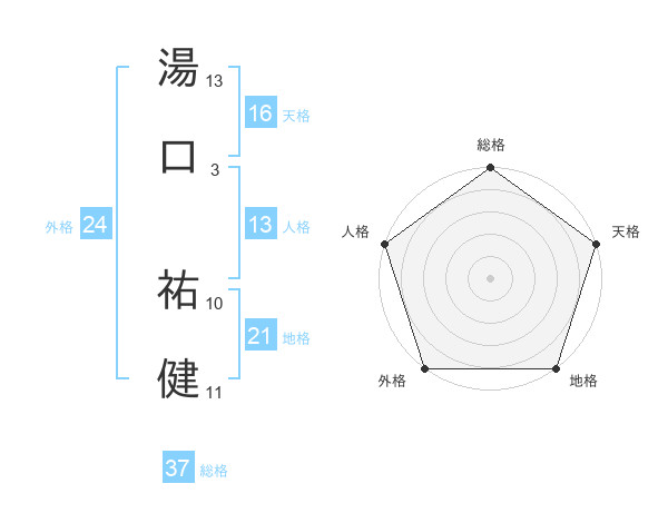 湯口 祐健さんの総格は37画の5点!