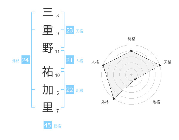 三重野 祐加里さんを姓名の画数から五運を鑑定