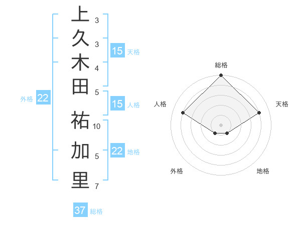 上久木田 祐加里さんを姓名の画数から五運を鑑定