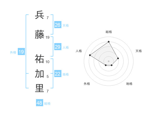 兵藤 祐加里さんを姓名の画数から五運を鑑定