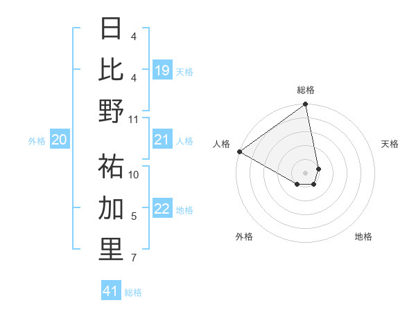日比野 祐加里さんの総格は41画の5点!
