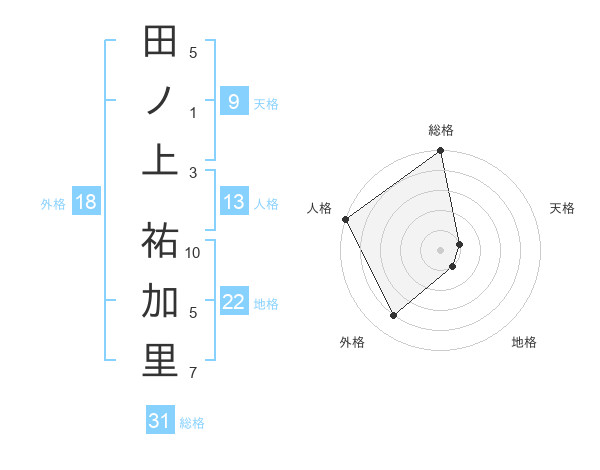 田ノ上 祐加里さんの総格は31画の5点!